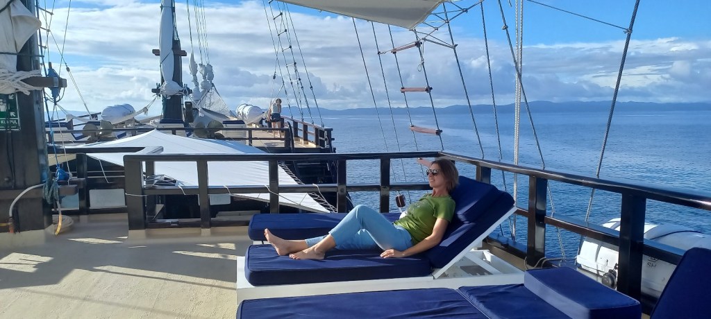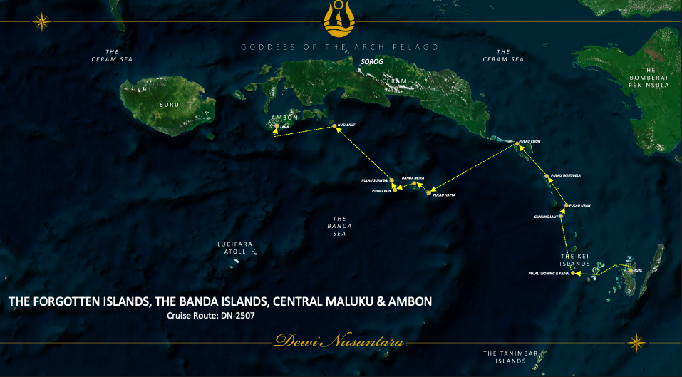 From March 31 to April 11 2025, Anya and I lived an experience that brought together some of our greatest passions: diving, history, and slow traveling. Aboard the Dewi Nusantara, one of the most elegant liveaboard to sail the Indonesian seas (I wrote about her in detail in this article on Scubaportal), we cruised through the legendary Spice Islands, visiting corners of the world where time feels like it’s stood still. We set off on a 12-day liveaboard journey along the routes of the Forgotten Islands, the Banda Islands, Nusa Laut, and Ambon. A crossing of Eastern Indonesia blending marine biology, colonial history, and geological isolation.