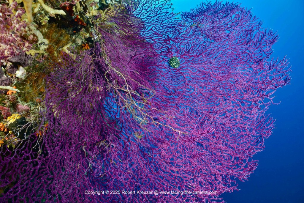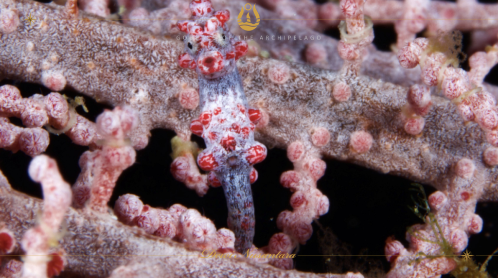 Tucked among the ledges and sea fans, our expert guides managed to spot for us some pygmy seahorses (Hippocampus bargibanti), beautifully hidden in the gorgonians: tiny treasures almost impossible to find without trained eyes.